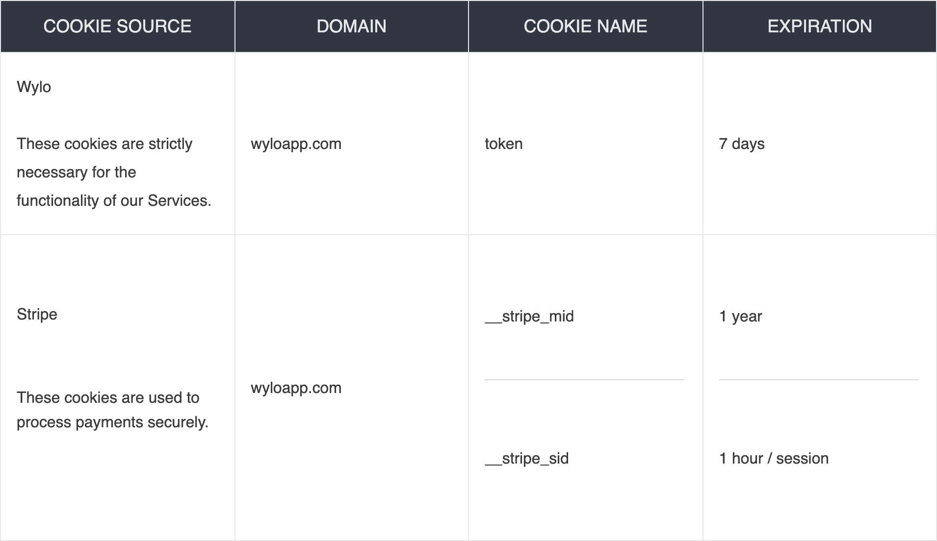 Wylo Cookie Policy