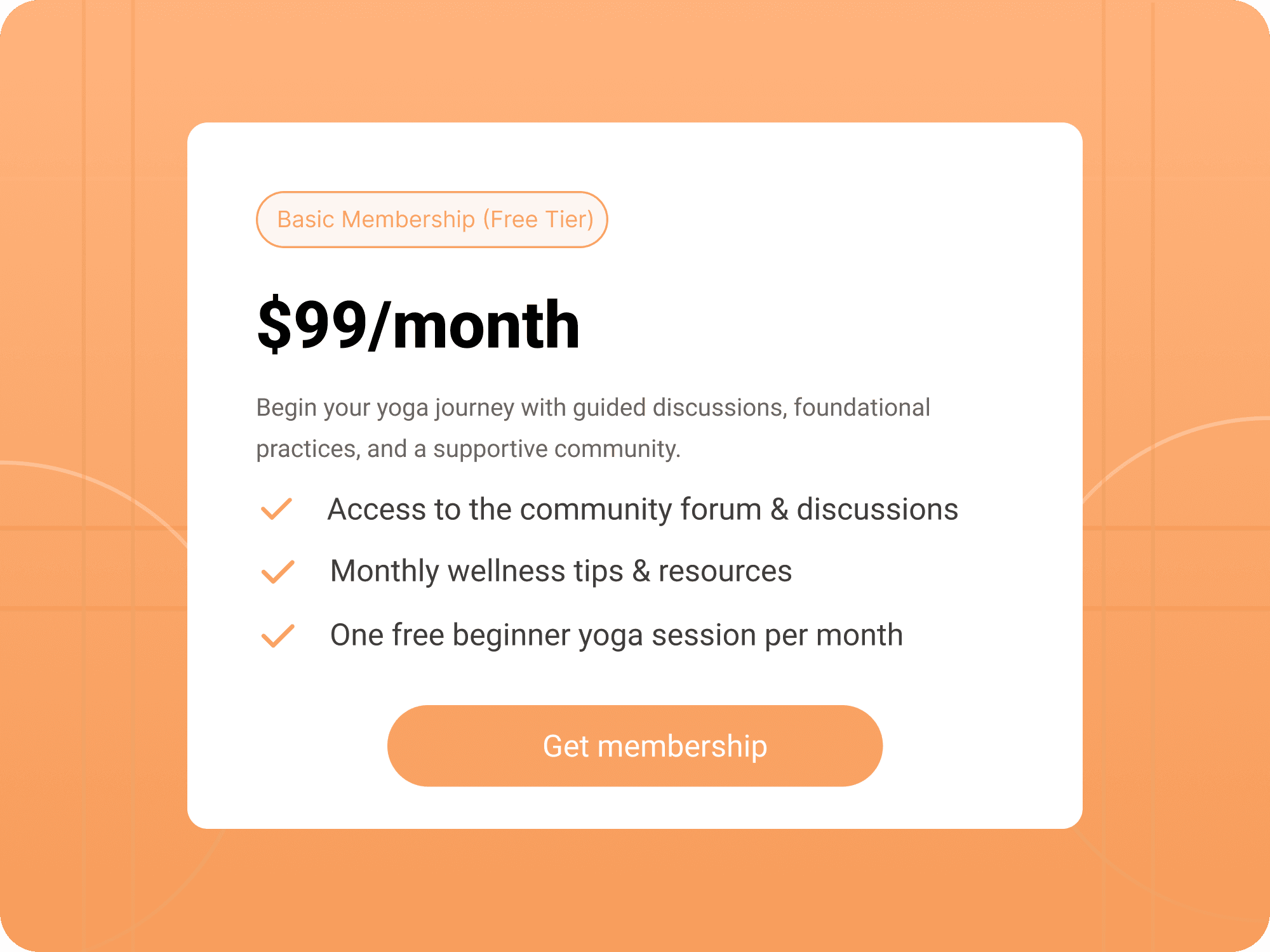 🔹 Running guided yoga courses and meditation sessions 🔹 Hosting live wellness retreats, challenges, and Q&A events 🔹 Selling exclusive wellness guides, yoga routines, and holistic health plans 🔹 Engaging with learners through discussions, reflections, and support groups 🔹 Building a premium wellness community with exclusive resources and training